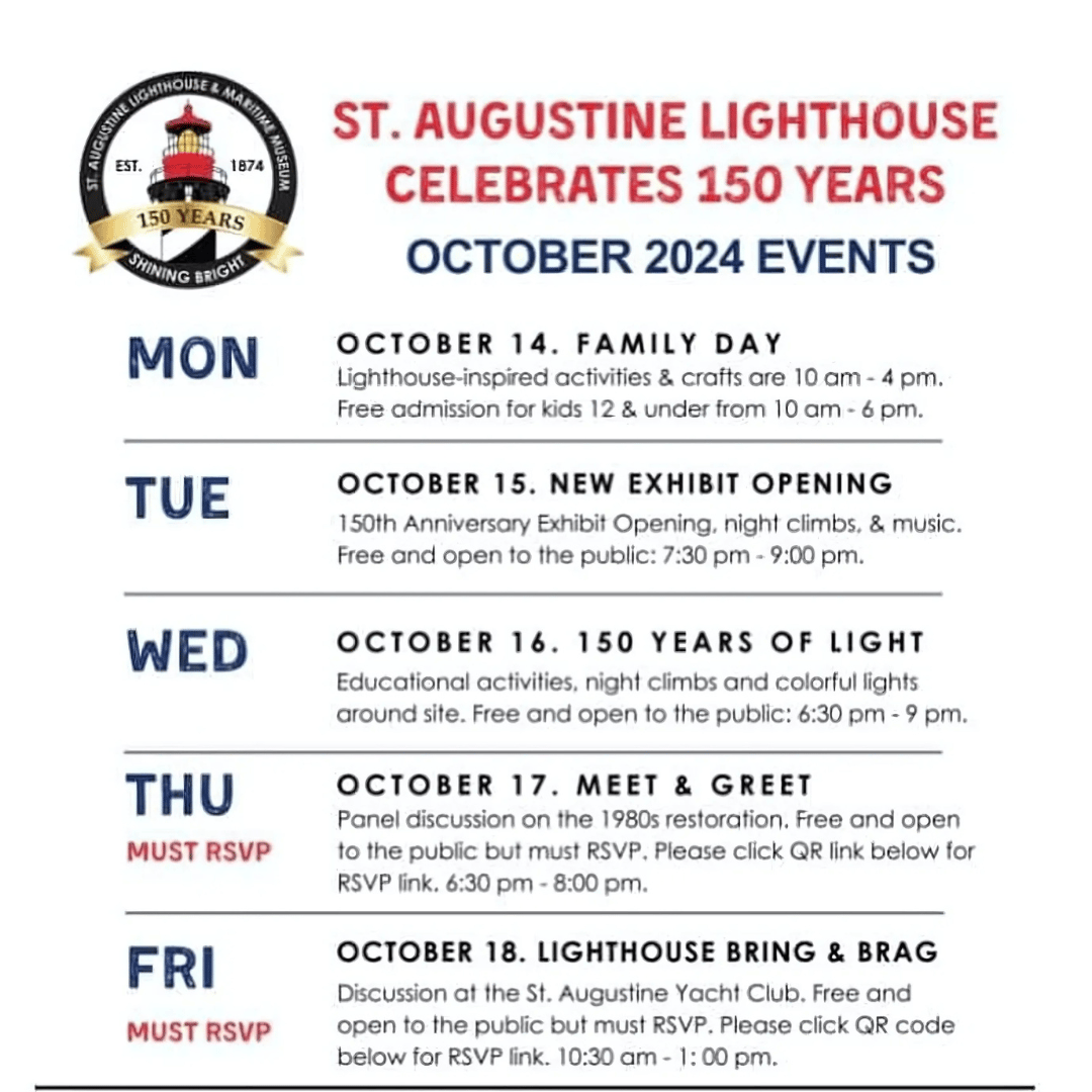 Some events require RSVP, so head over to staugustinelighthouse.org/events to reserve your spot.